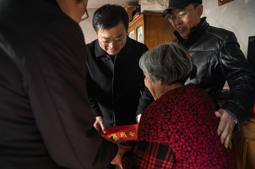 “快进屋,炕上暖和。”村民赵述堂、阎小云两位老人是河北崖村的在档贫困户,平日里行动多有不便。71岁的阎大妈失明多年,84岁的赵大爷因病卧床,耳朵还听不见,但喜悦之情溢于言表。“您好,我们是看望您二老来的。”市委副秘书长、办公室主任吕世强走到炕前,询问着老人的家庭、身体情况。在与老人促膝交流中,叮嘱老人保护好身体,并送上慰问金和慰问品。